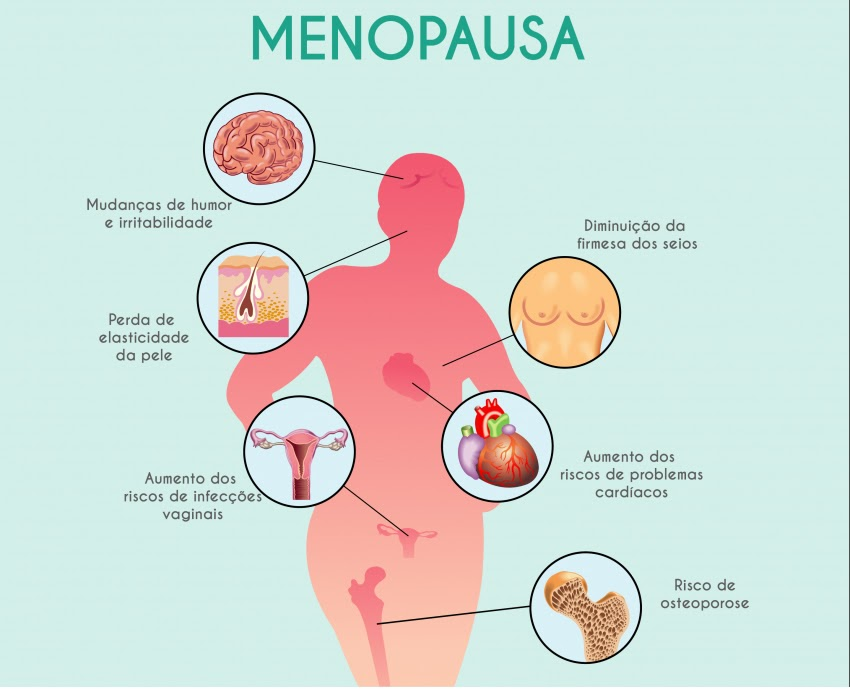 Sofre com ondas de calor, insônia, irritabilidade, ganho de peso ou queda de libido;